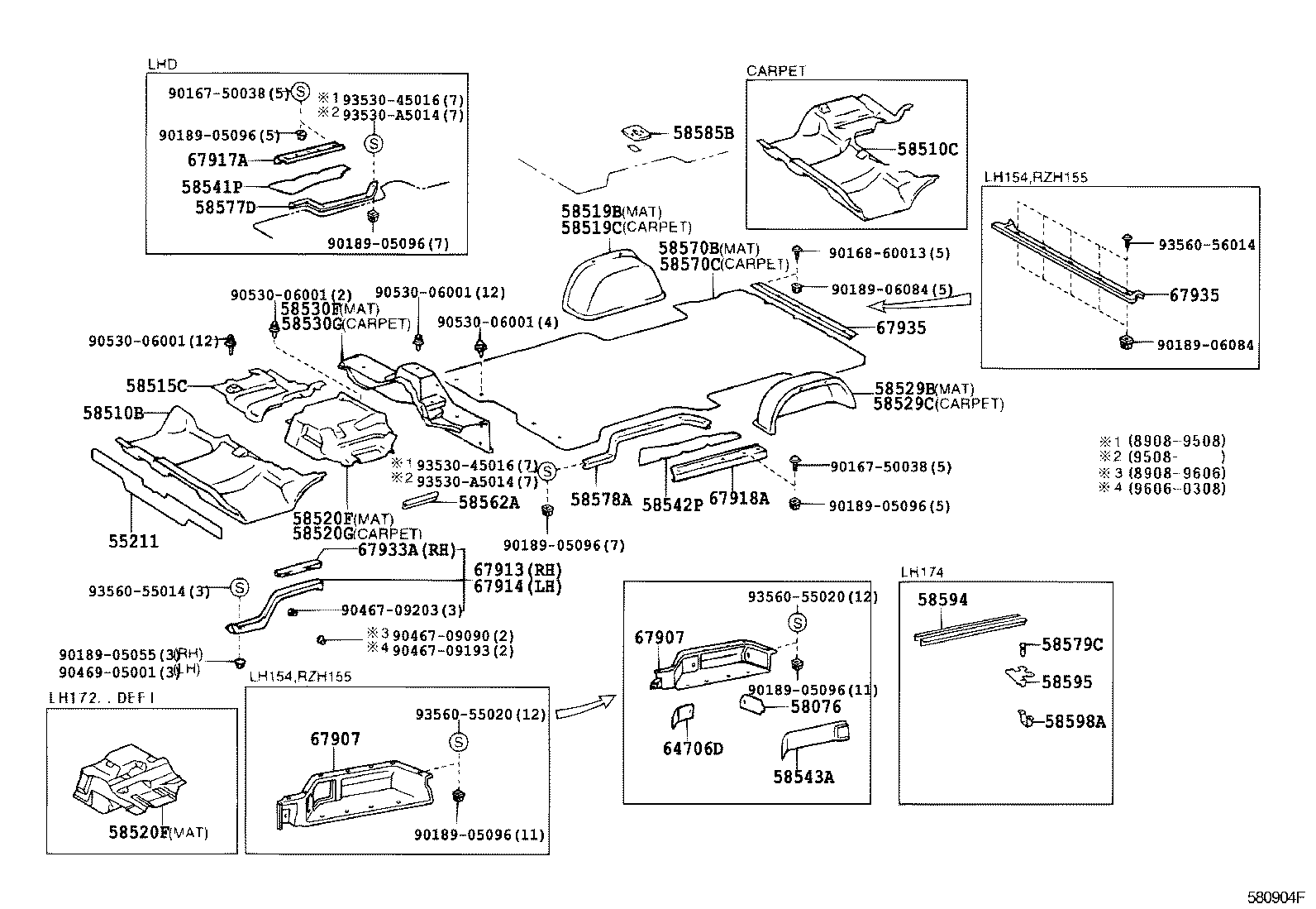 РЕГІОН: Європа > Автомобіль: HIACE VAN,COMMUTER 198908 200602 A2 > Модель: LH112L-SRMRSX > Група: КУЗОВ (3) > Підгрупа: Покриття підлоги, звукоізоляція підлоги (5854)