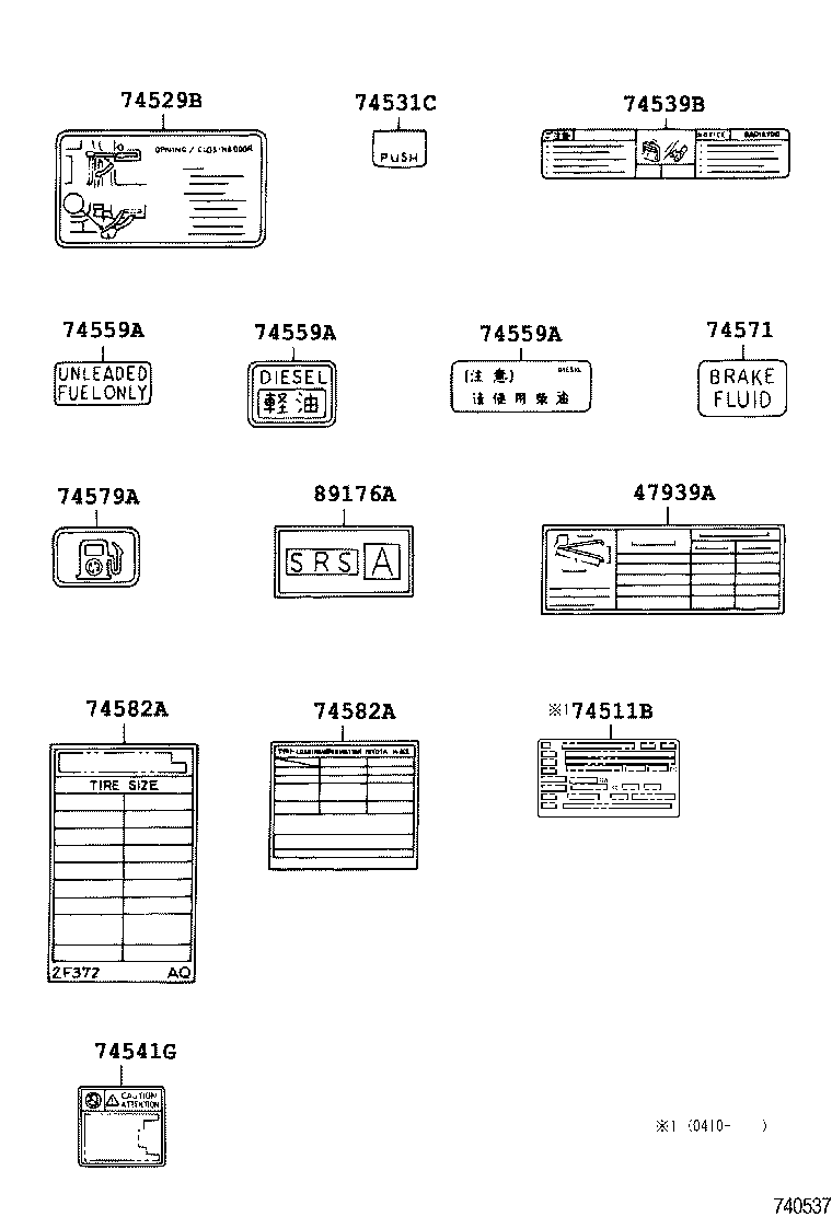 РЕГІОН: Європа > Автомобіль: HIACE VAN,COMMUTER 198908 200602 A2 > Модель: LH112L-SRMRSX > Група: КУЗОВ (3) > Підгрупа: Попереджувальні таблички (7455)
