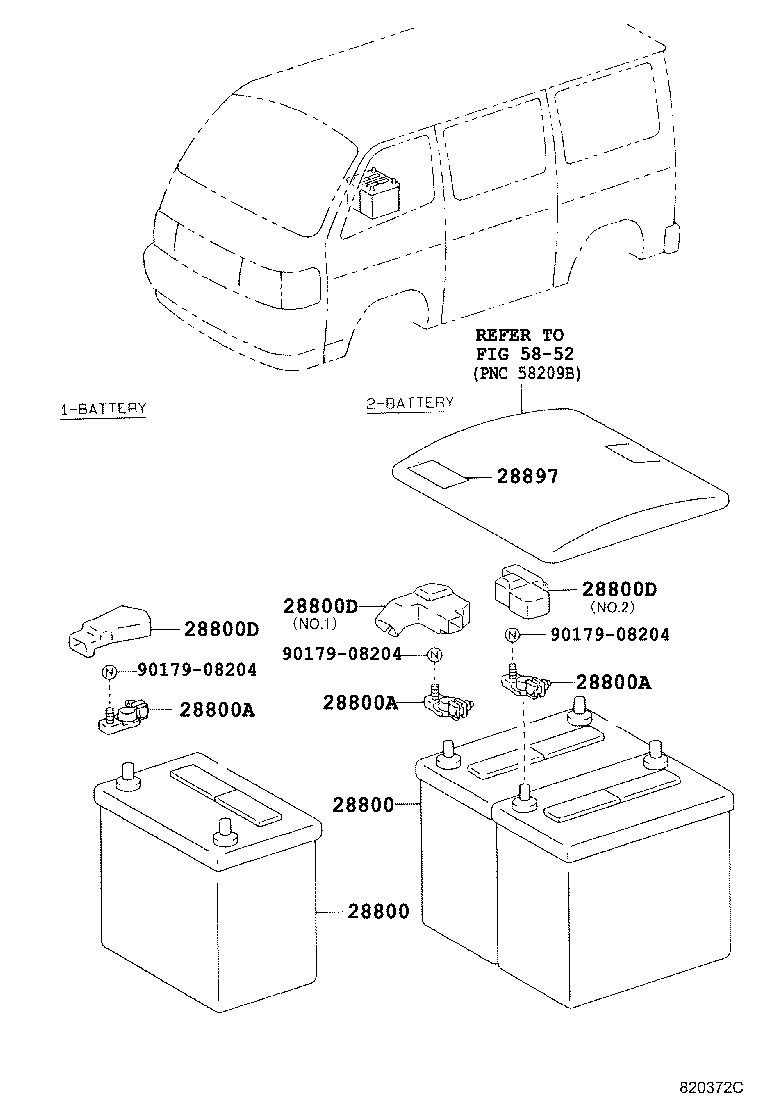 РЕГІОН: Європа > Автомобіль: HIACE VAN,COMMUTER 198908 200602 A2 > Модель: LH112R-RBMRS > Група: ЕЛЕКТРИКА (4) > Підгрупа: АКБ й проводка (8201)