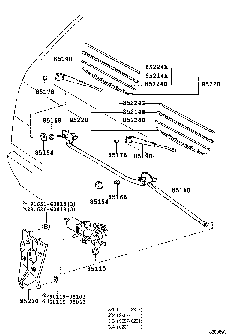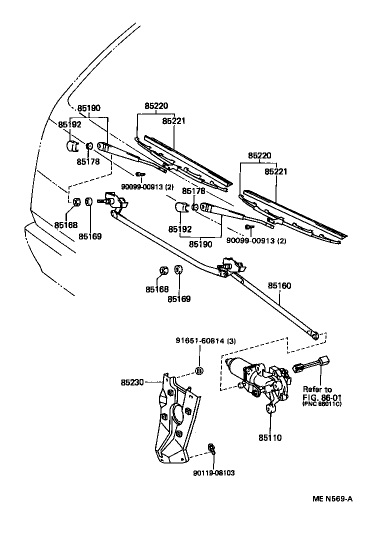 РЕГІОН: Європа > Автомобіль: HIACE VAN,COMMUTER 198908 200602 A2 > Модель: LH112R-RBMRS > Група: ЕЛЕКТРИКА (4) > Підгрупа: Склоочисник передній (8501)