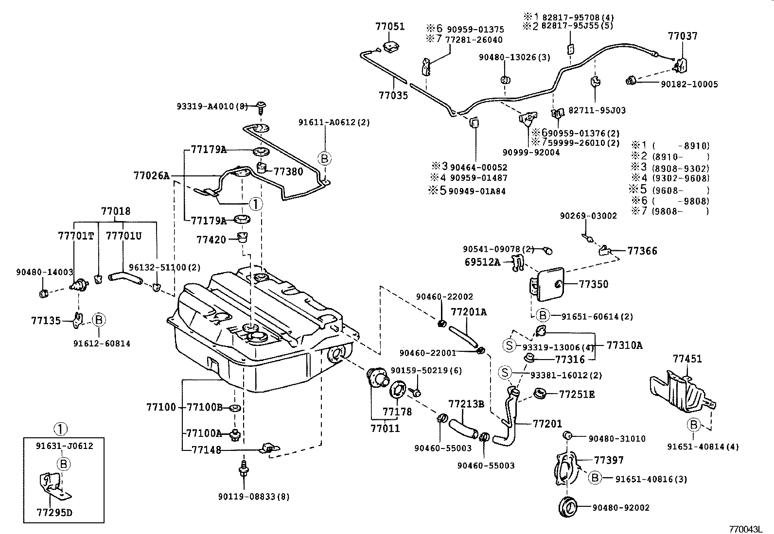 РЕГІОН: Європа > Автомобіль: HIACE VAN,COMMUTER 198908 200602 A2 > Модель: LH162R-SRMRS > Група: КУЗОВ (3) > Підгрупа: Паливний бак й патруби (7751)