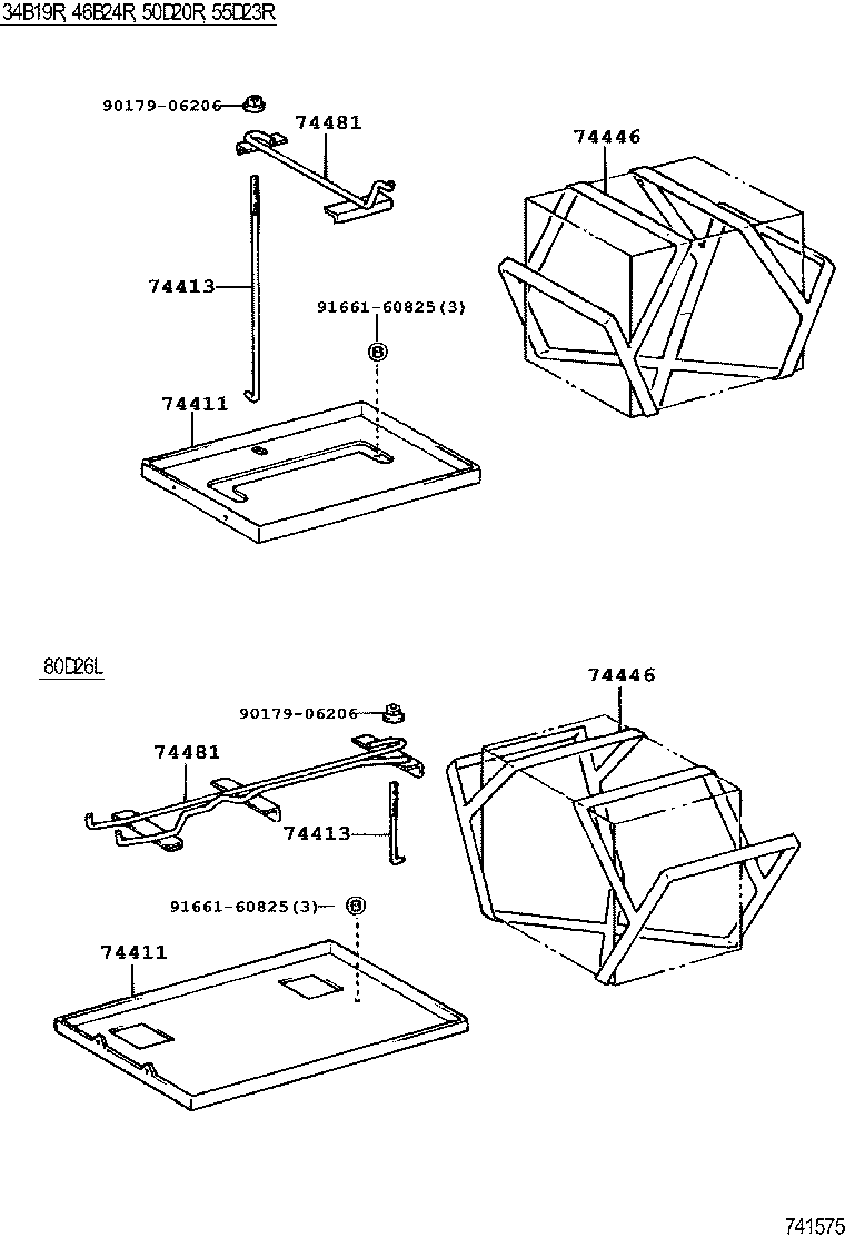 РЕГІОН: Європа > Автомобіль: HIACE VAN,COMMUTER 198908 200602 A2 > Модель: RZH113L-RBMRE > Група: КУЗОВ (3) > Підгрупа: Кріплення АКБ (7454)