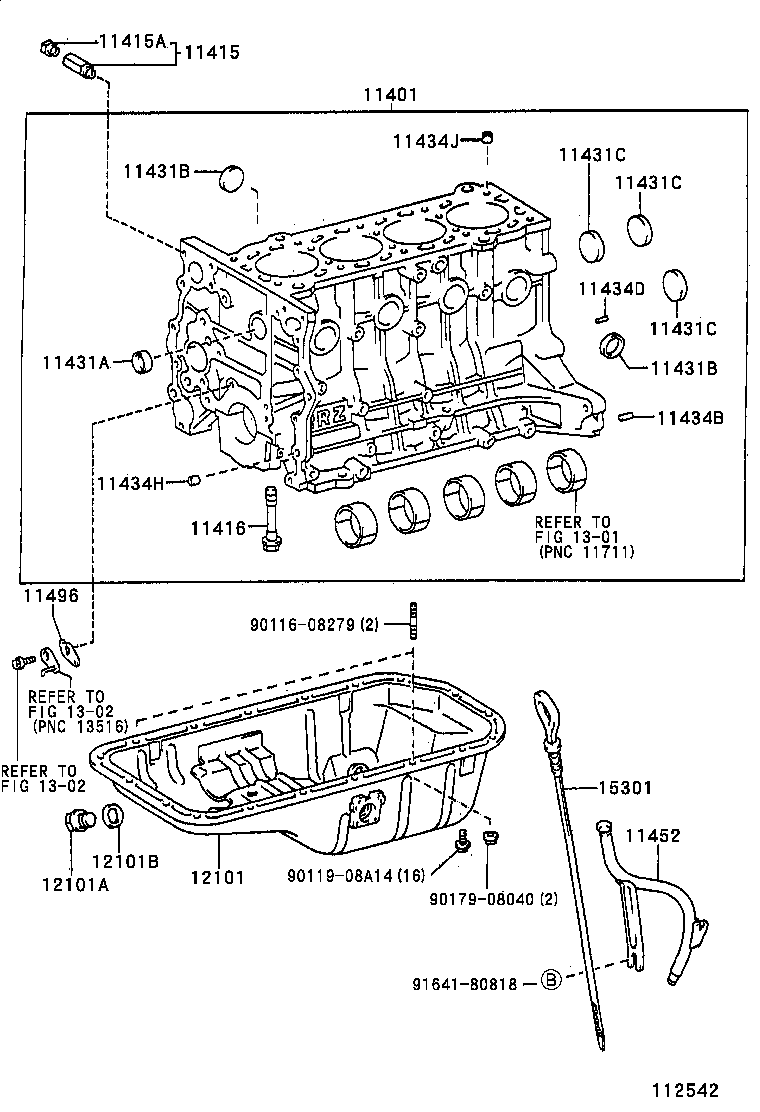 РЕГІОН: Європа > Автомобіль: HIACE VAN,COMMUTER 198908 200602 A2 > Модель: RZH114L-ZRMNS > Група: ДВИГУН, ПАЛИВНА СИСТЕМА, ІНСТРУМЕНТИ (1) > Підгрупа: Блок циліндрів (1105)