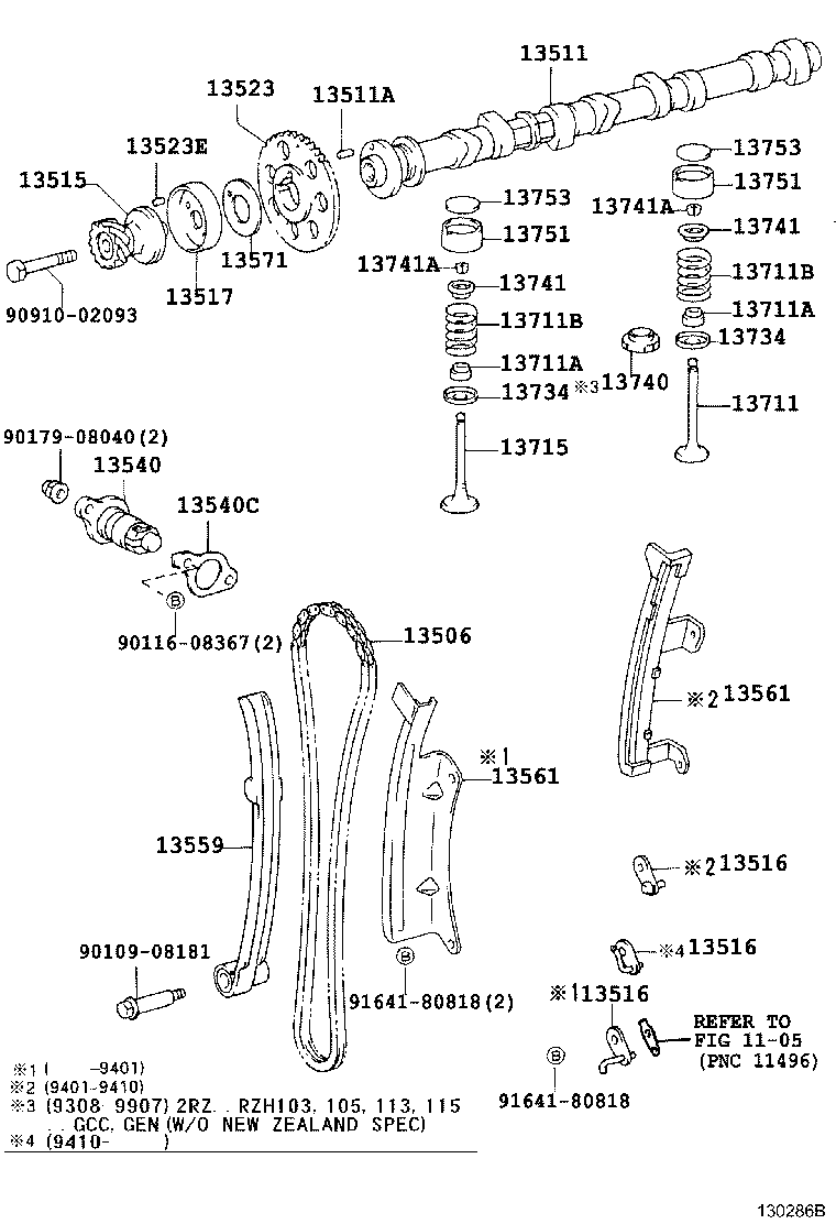 РЕГІОН: Європа > Автомобіль: HIACE VAN,COMMUTER 198908 200602 A2 > Модель: RZH125R-ZRPREQ > Група: ДВИГУН, ПАЛИВНА СИСТЕМА, ІНСТРУМЕНТИ (1) > Підгрупа: Розпредвал й клапани, ремінь ГРМ (1302)
