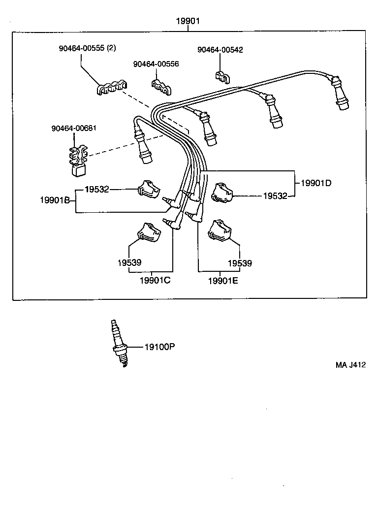 РЕГІОН: Європа > Автомобіль: HIACE VAN,COMMUTER 198908 200602 A2 > Модель: RZH125R-ZRPREQ > Група: ДВИГУН, ПАЛИВНА СИСТЕМА, ІНСТРУМЕНТИ (1) > Підгрупа: Катушка запалювання й свічі (1901)
